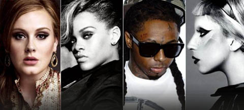 Adele es la gran favorita de estos galardones con un total de 18 nominaciones (las mismas que recibió Rihanna el año pasado). Le siguen LMFAO con 17 nominaciones, Rihanna con 13 y Lady GaGa y Lil Wayne con otras 10.