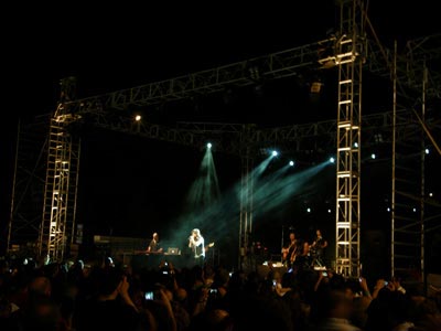 Manuel Carrasco actuó en un sencillo escenario con el excelente acompañamiento de una gran banda de músicos.