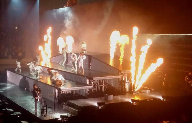 Sí que es cierto que “Perfect illusion”, que sonó a continuación, quedó un poco descafeinada. Incomprensiblemente Gaga recortó a la mitad la que para mí es una de sus canciones favoritas. Gustos personales aparte, es curioso que hiciera esto con el que fue el primer single de su último disco y dé más protagonismo a otros temas como “John Wayne”, que no es ni mucho menos peor, pero que es menos mediático. Con este tema, descubrimos que el escenario escupía fuego en algunos puntos y todos quedamos fascinados.