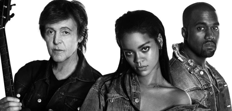 Videoclips 3 febrero 2015Rihanna publica el vídeoclip de su single junto a Kanye West y Paul McCartney ‘FourFiveSeconds‘ debutó en el #1 de iTunes de más de 25 países.
